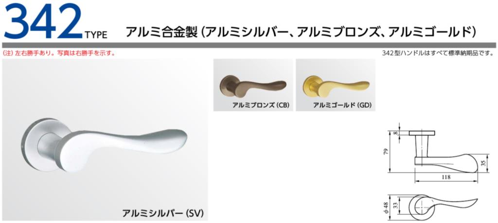 MIWA,美和ロック 342型レバーハンドル 概要 2024 3/30 レバーハンドルデザイン メイン画像 外形図 カラーバリエーション 納期 注意 レバーハンドルデザイン MIWA 美和ロック コメント コメントを残すコメントをキャンセル